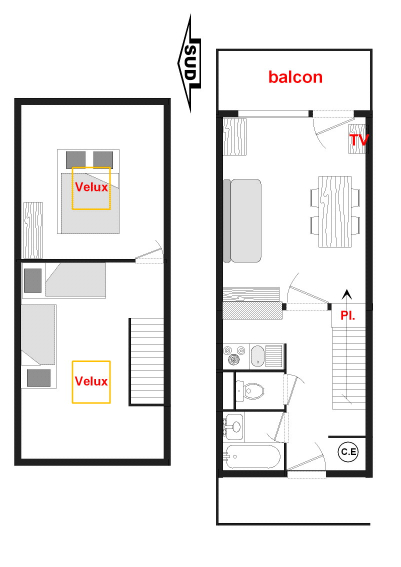 Apartment DUPIN. 2 rooms duplex, 6 persons, 32 sqm, 1st floor, WEST exposure with balcony, view on the Mont Charvin.
