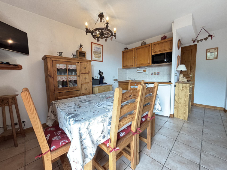Apartment FORRAY. Les OURSONS A. 3 rooms, 6 persons, 39 sqm, 1st floor, 2 balconies: 1 NORTH exposure with view on the Mont Charvin and the valley and 1 WEST exposure with view on the foot of the slopes.