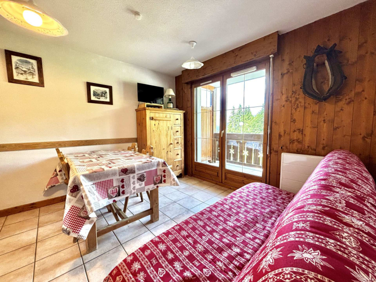 Apartment PONCET. Les OURSONS B. 3 rooms, 6 persons, 33 sqm, groundfloor, NORTH exposure with balcony, view on the Mont Charvin and the valley.