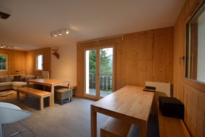 OUR OPINION: Pleasant holidays in this splendid chalet exposed full SOUTH with a sight to cut the breath! Quality services with new equipment in typical mountain style, the work will be completed this fall. It is located close to the Lachat mini-market and the Chez Maryse pizzeria.