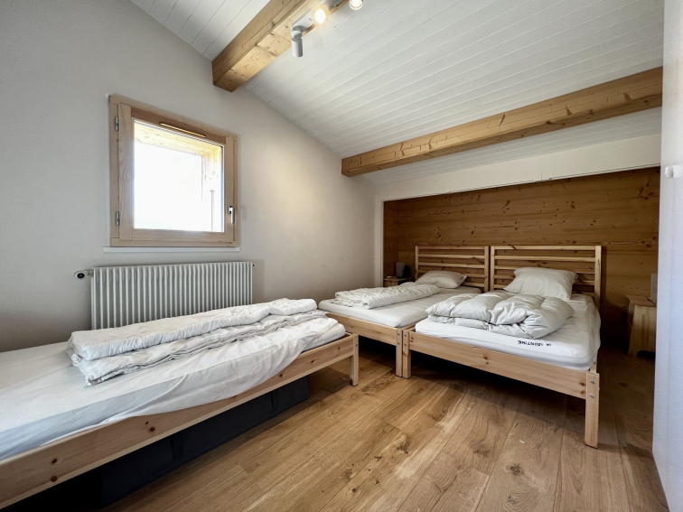 *On the GROUND FLOOR : a garage, a ski-room and bicycle room, a double bedroom (bed 160), a bedroom with bunk beds (2*90), a shower room and toilets.
