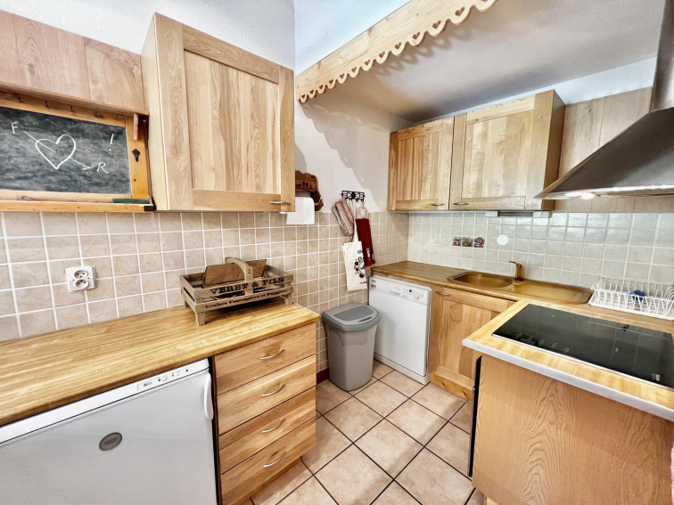 OUR OPINION : Living room of a good surface with its balcony view on the slopes. Spacious apartment, facing the snow front and the ski school. Very convenient for a family with children or for vacations with friends.