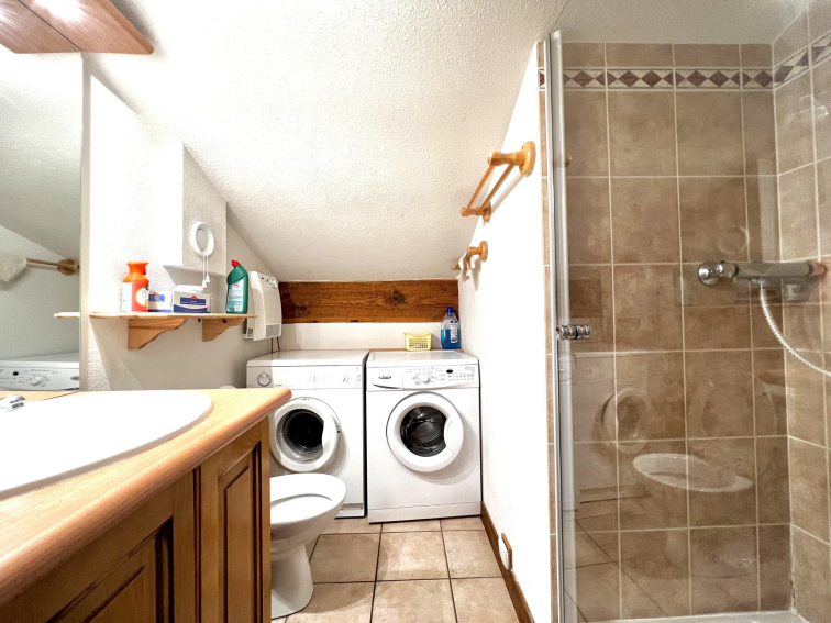- One bathroom, one shower room with toilet, one shower room with toilet, washing machine and dryer .