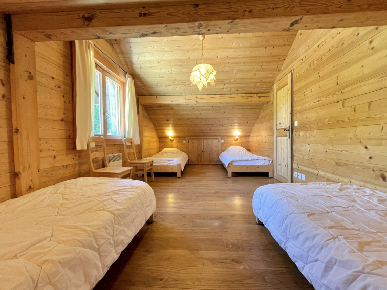 *FLOOR: a double room (bed of 140) + a wooden baby bed and nursery corner, a dormitory room with four single beds (4x90), bathroom with shower, toilet.