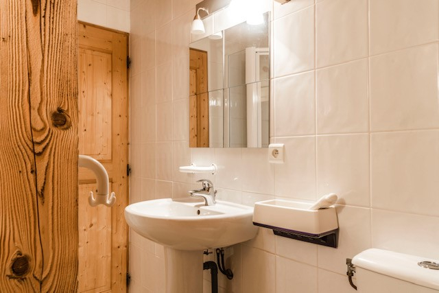 *GARDEN FLOOR : entrance hall which can be used as ski room, two double bedrooms (2x140), one double bedroom en suite with shower room (bed 140), 1 dormitory bedroom with 2 single beds and bunk beds (4x90), bathroom with shower, and toilets.