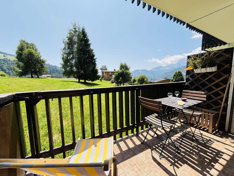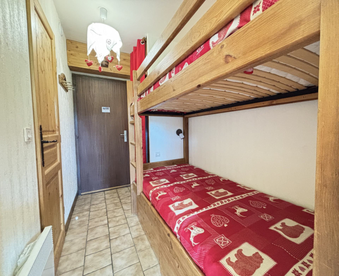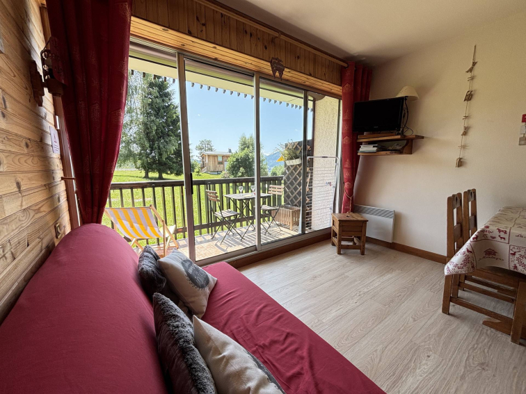 This 18 m² studio apartment is located at the foot of the Espace Diamant slopes. It has a south-facing balcony, ideal for enjoying the sun all day long. Designed to accommodate up to four guests. Located on the garden level, the apartment offers an unobstructed view of Mont Charvin.