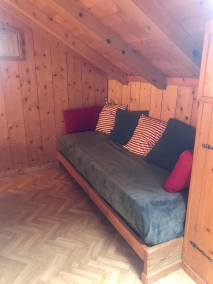 À l'étage: la chambre avec un lit 140 cm et lit en 0.70 cm.