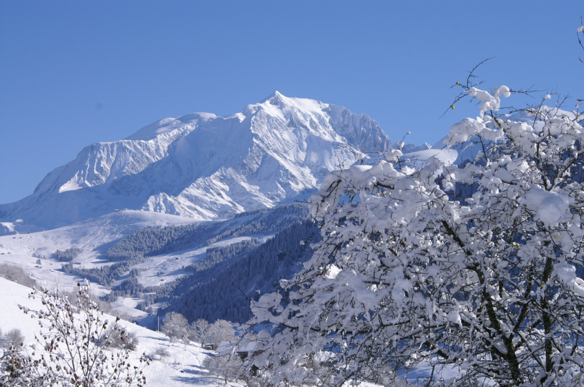 Vue magnifique (MontBlanc, Aiguille du Midi, Pistes de Megeve et Praz )