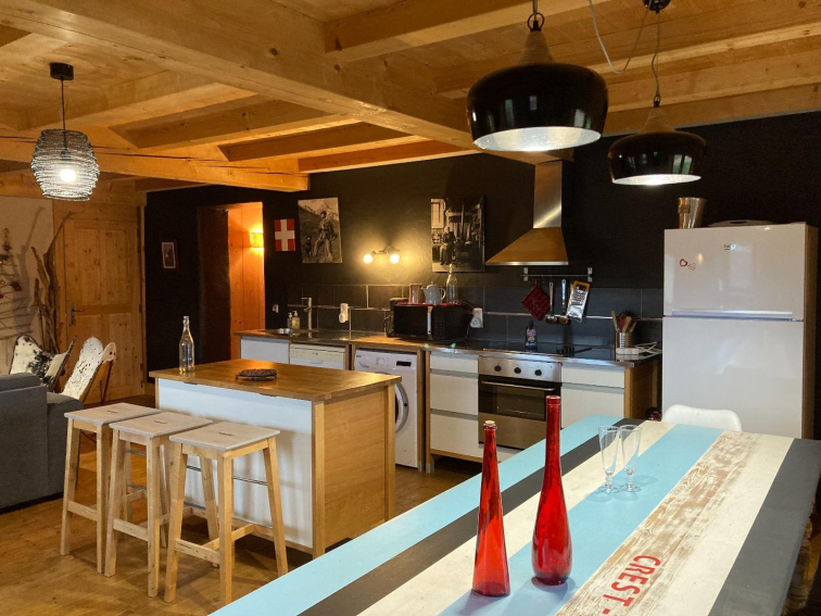 Nous vous proposons 2 beaux appartements en RDC d'une ancienne ferme d'alpage rénovée, le Mont Blanc et le Mont charvin, offrant charme, volume et confort. 80m2 chacun, jusqu'à 16/17 personnes, salon séjour cuisine équipée, 2/4chambres, salle de bain grande douche et wc séparés