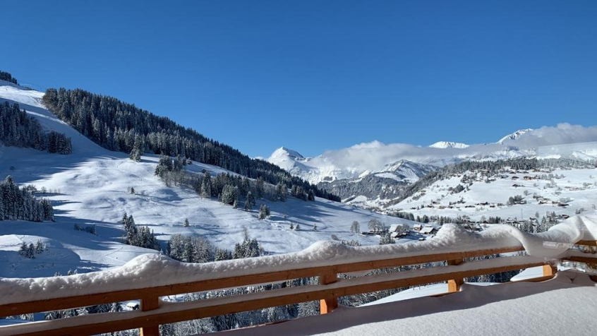 Sa terrasse plein sud avec vues sur la chaîne des Aravis est parfait pour des apéros au soleil.