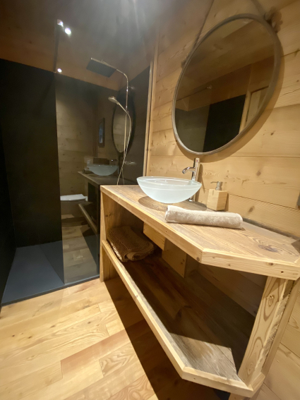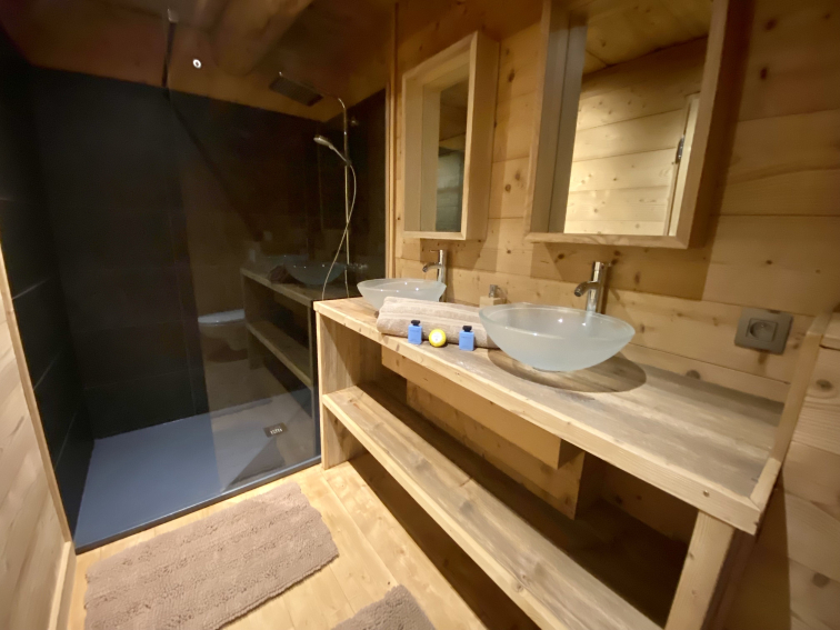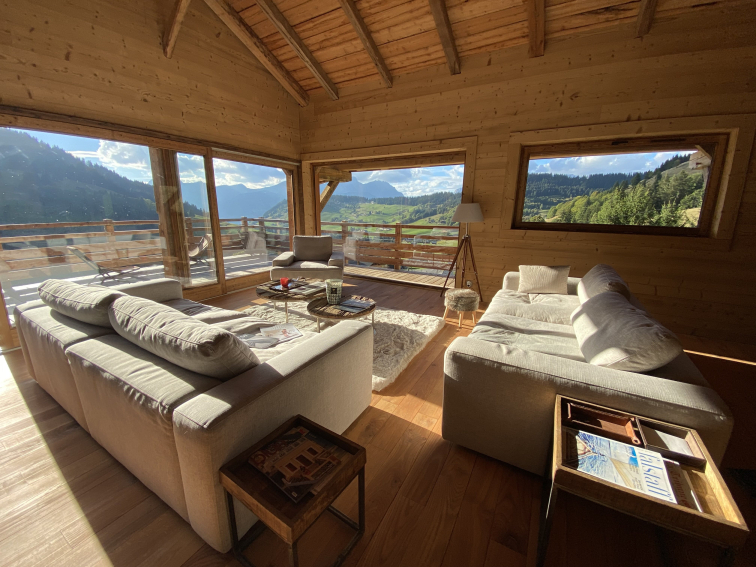 Le Chalet offre un grand espace de vie alliant l’authenticité avec un style contemporain.