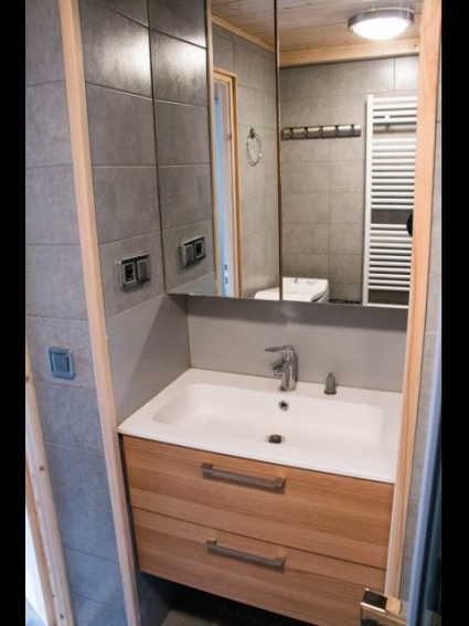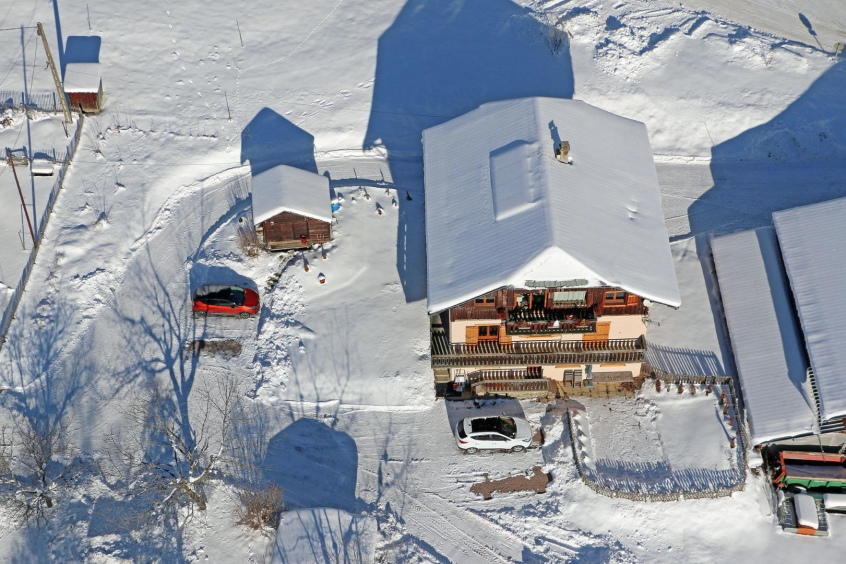 Pour l'hiver, un mazot sert de local à ski. Il est doublé, chauffé, doté d'un râtelier porte-skis, d'étagères pour vos chaussures et d'un banc pour vous changer. En été, ce petit chalet peut servir pour y ranger vélos et poussettes.
