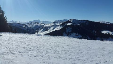 Vue imprenable sur la chaine des Aravis et le Mont Charvin.