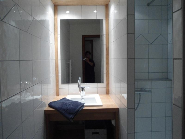 Salle d'eau avec sèche serviettes