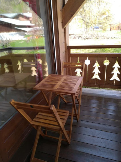 Balcon avec table de jardin pour profiter du soleil.