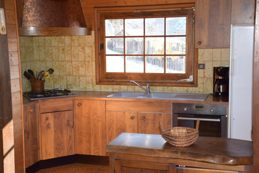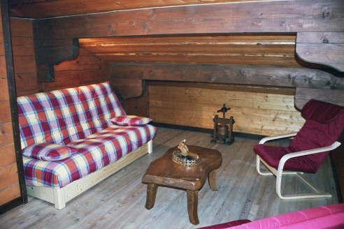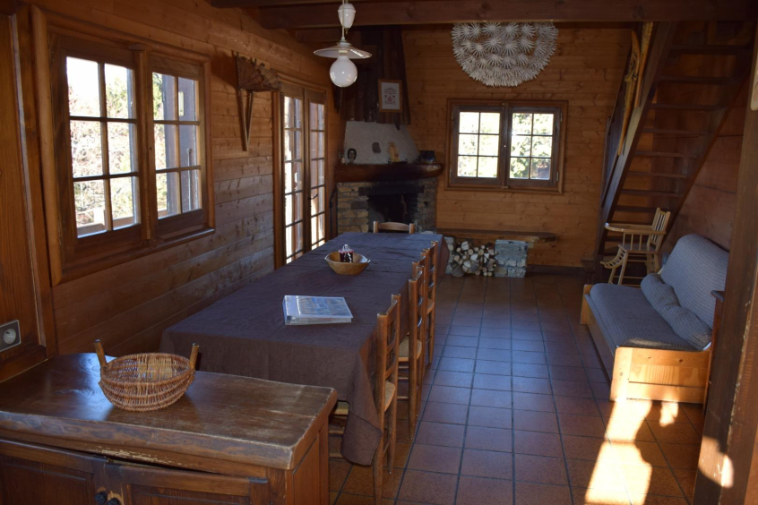 - 1 pièce principale avec coin cuisine, salle à manger, coin cheminée