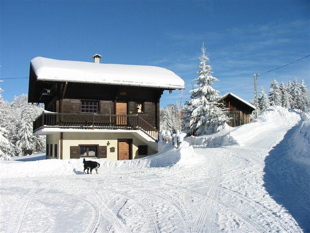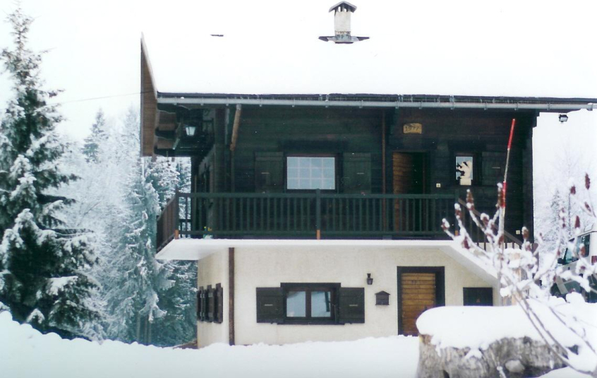 " Le Chalet Les Vardaches " 83, Chemin de Combe Noire, est situé au calme, en lisière de forêt et bordure de village, face au Mont Charvin et la chaine des Aravis