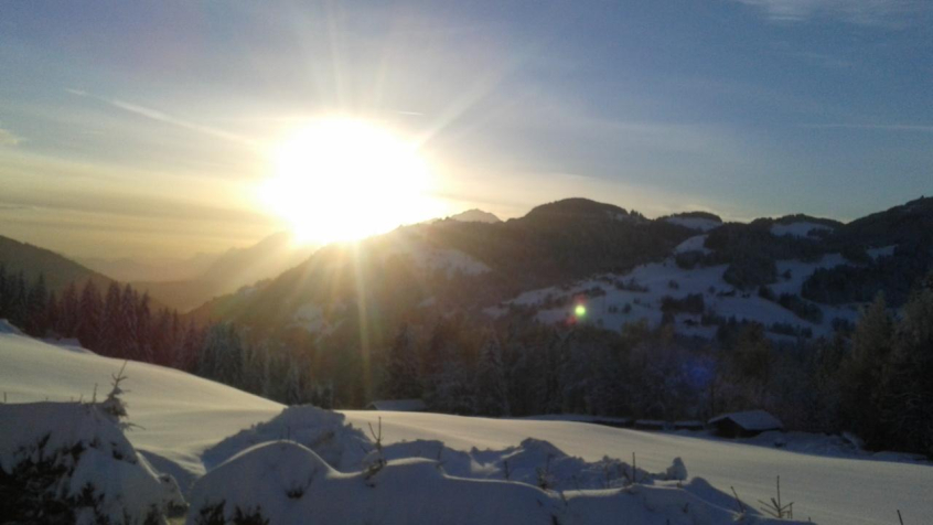 " Le Chalet Les Vardaches ", est situé au calme, en lisière de forêt et bordure de village, face au Mont Charvin et la chaine des Aravis