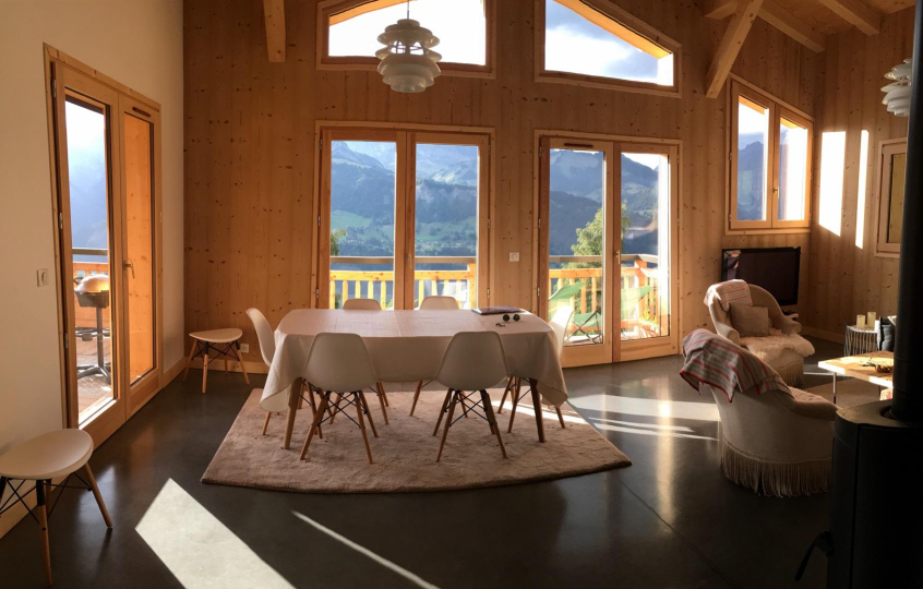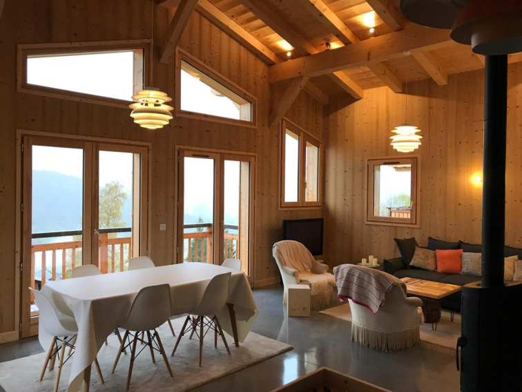 Chalet de charme en entier à 950 mètres du cœur du village de Crest Voland, accès facile en voiture, ski au pied (au bord des pistes de l'Espace Diamant), à 1290 mètres d'altitude, été-hiver.
