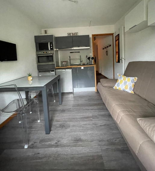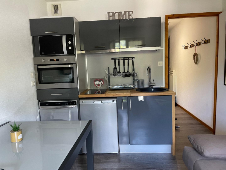 -1 pièce de vie avec une cuisine fonctionnelle équipée d’un véritable four, d’un micro-onde,d’un lave vaisselle, d’une plaque à induction, d’un frigo. Vous disposez d’une table de 2 à 4 personnes. D’une télévision