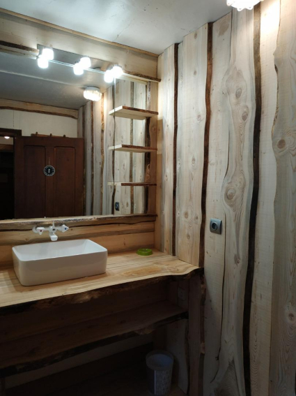 Construit par notre grand père, les chambres et pièces de vie vous transportent dans une autre époque...Les murs des chambres ainsi que les sols sont en bois …