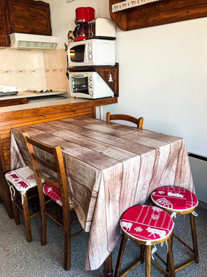 Studio bien situé, accès direct aux pistes. Très proche du centre du village. Belle vue sur Monte charvain et le village.