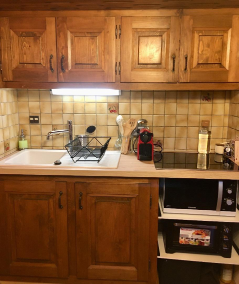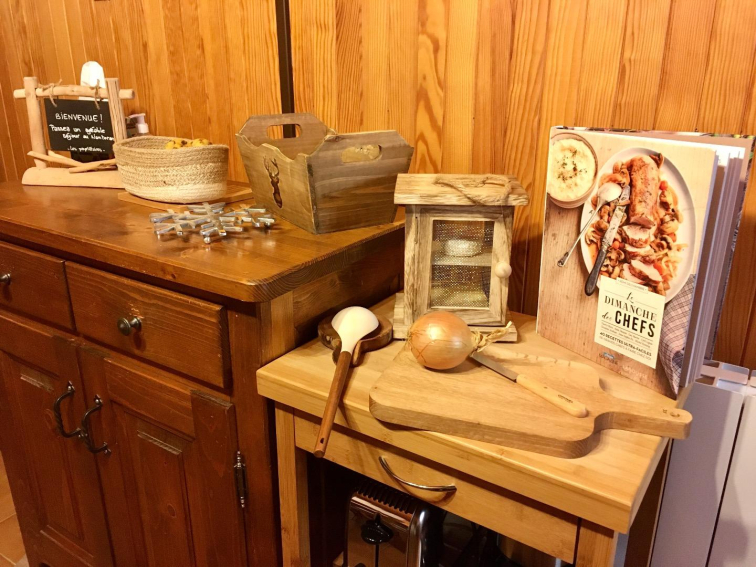 Les équipements présents dans le logement sont un lave-linge, un micro-onde et un mini four, un grille-pain, une bouilloire, cafetières italienne/expresso et filtre, un appareil à raclette, un service à fondue et croque panini-grill-gaufres.