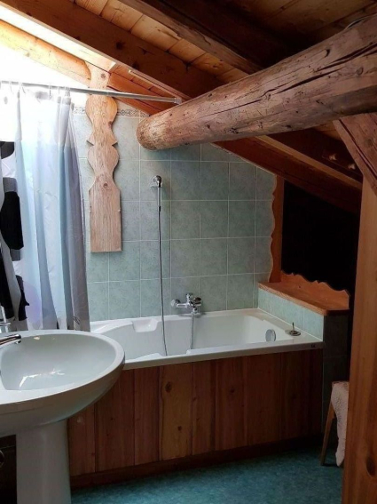 Il est composé de 3 chambres avec des lits en 90cm (superposés ou côte à côte) de 2 chambres avec lit en 140cm, d'une mezzanine avec 2 lits en 90cm, d'une pièce à vivre (mansardée), d'une petites cuisine, d'une salle d'eau avec douche et wc + 1 salle de bain avec baignoire et wc + 1 wc indépendant