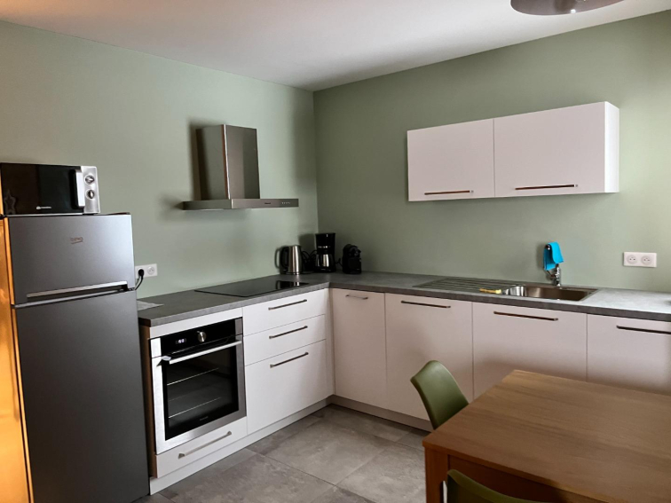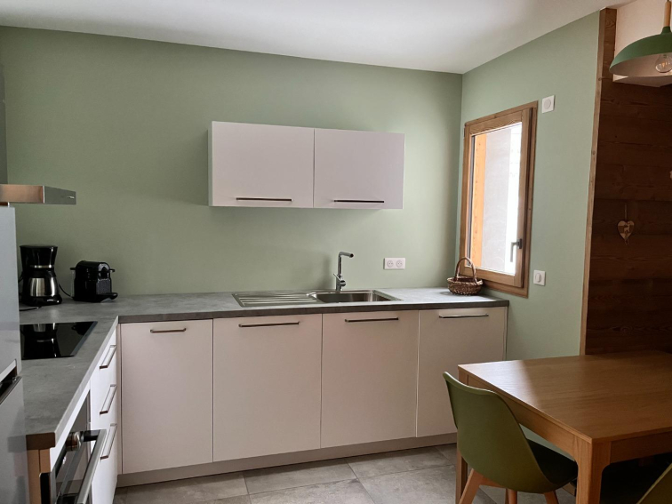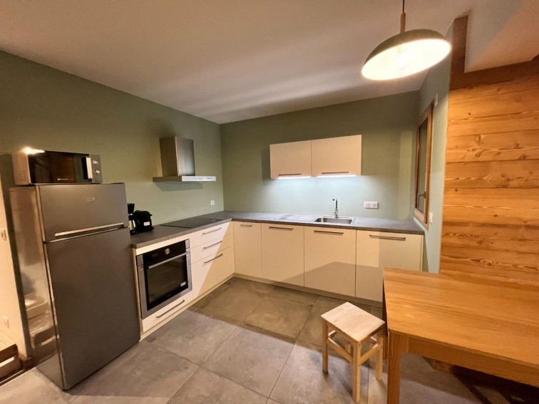 séjour avec coin cuisine équipée, (four, MO, plaque induction, frigo/congel, lave vaisselle, nespresso, bouilloire, cafetière, appareil a raclette, à fondue TV, wifi.
