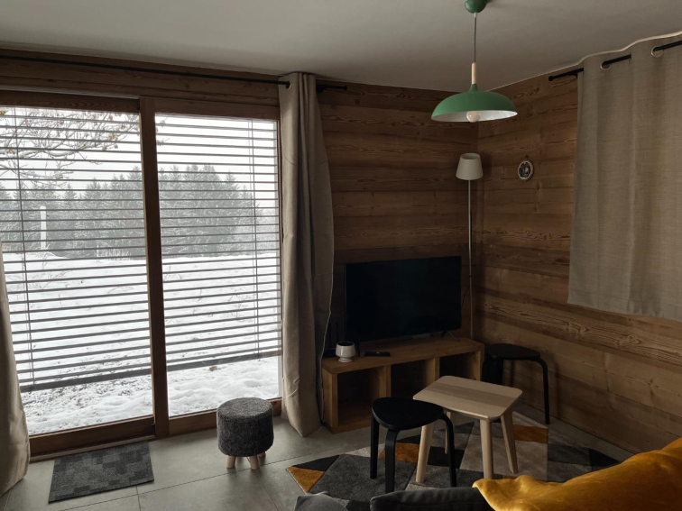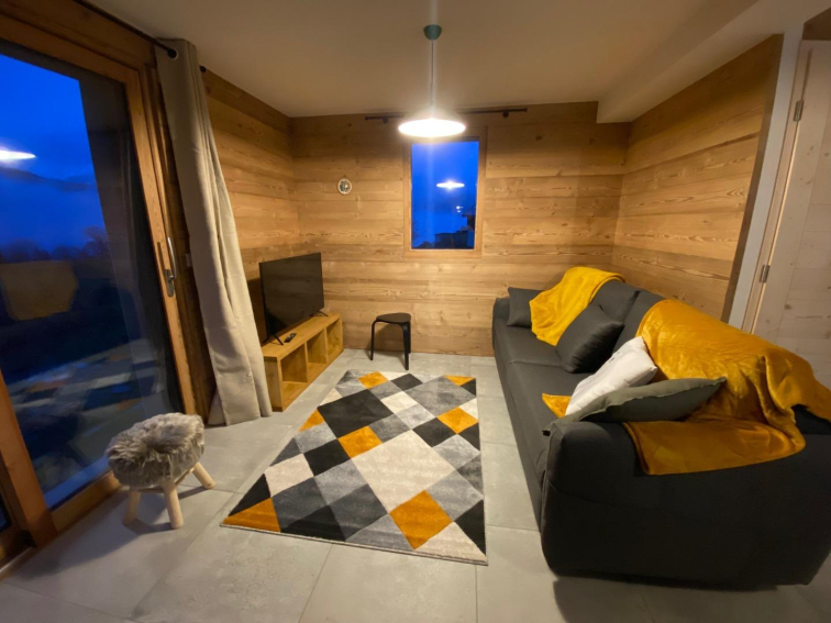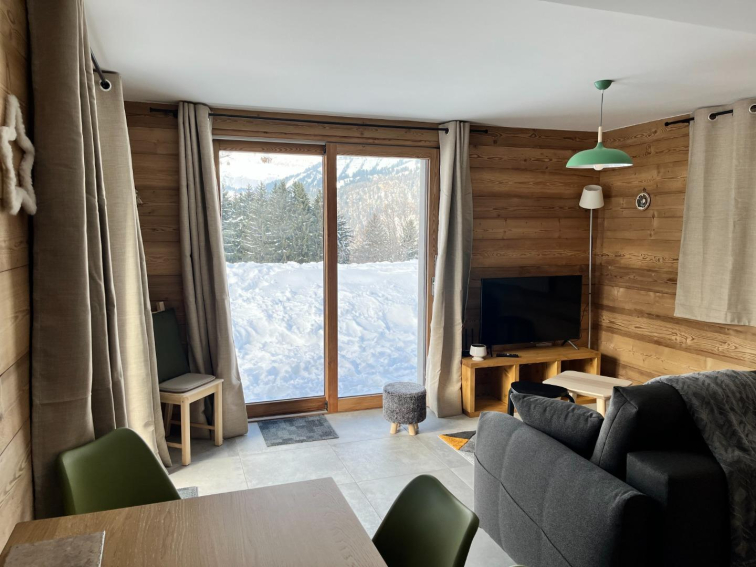 Centre village Crest Voland, 50 m de l'ESF, et départ des pistes, proximité immédiate des commerces.Hyper centre du village et en retrait de la route , vue sur Aravis, orientation sud/sud ouest, au calme, appartement lumineux dans chalet neuf, cosy et fonctionnel. Ambiance vieux bois. Aucun vis à vis, repos assuré.une place de stationnement.
