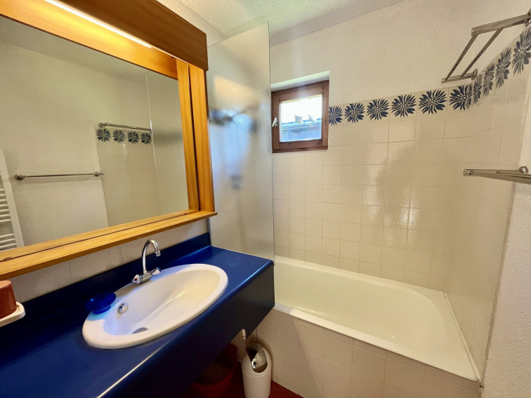 Appartement de deux pièces pour six personnes, au premier étage, il est d' une surface de 37 m² avec un grand balcon d'angle SUD/EST offrant la vue sur le Mont Charvin et la vallée.