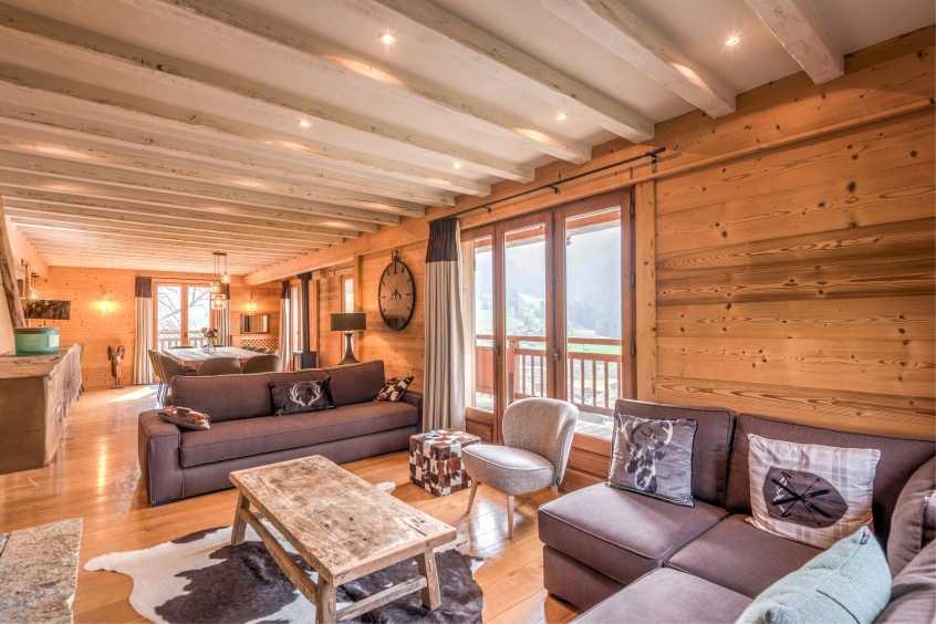 Magnifique chalet de 245 m² à Praz-sur-Arly, avec une vue exceptionnelle sur le village et les montagnes.