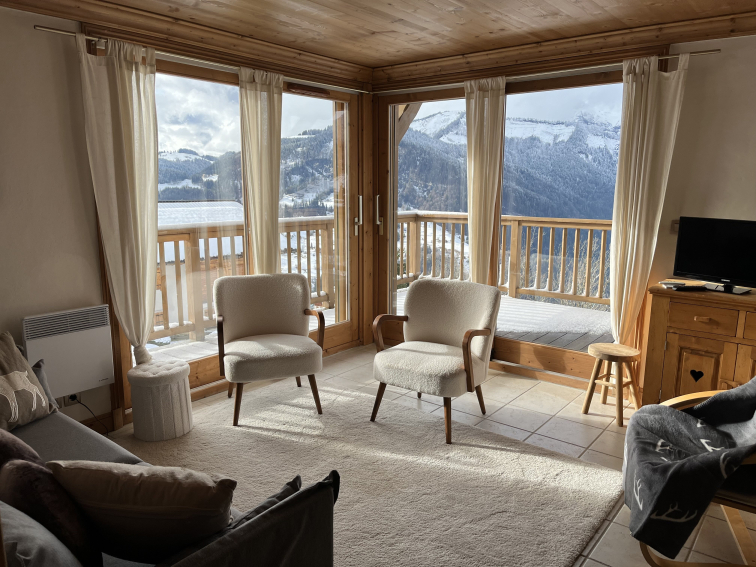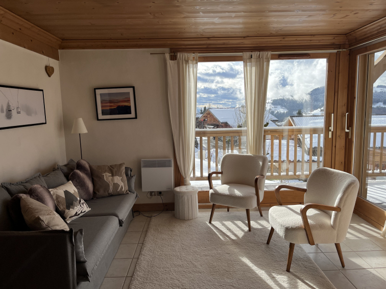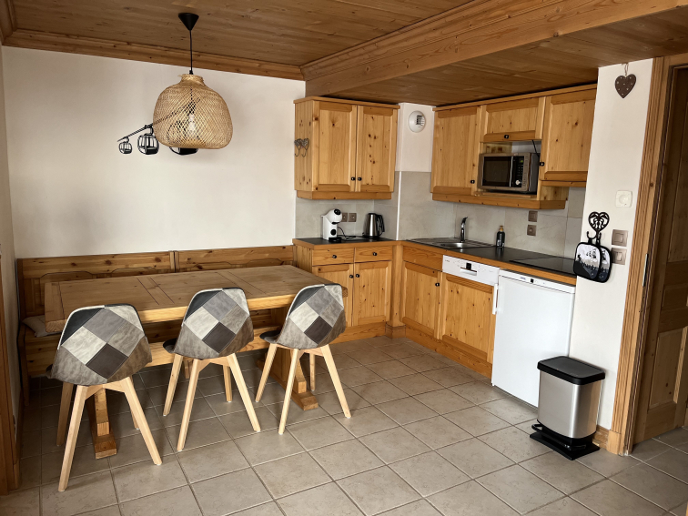 APPARTEMENT TRES LUMINEUX ET SOIGNEUSEMENT AMENAGE SITUE DANS UN CHALET PROCHE DU CENTRE DU VILLAGE ET DES REMONTEES. VUE INCROYABLE SUR LE MONT CHARVIN , ORIENTATION SUD, TERRASSE.