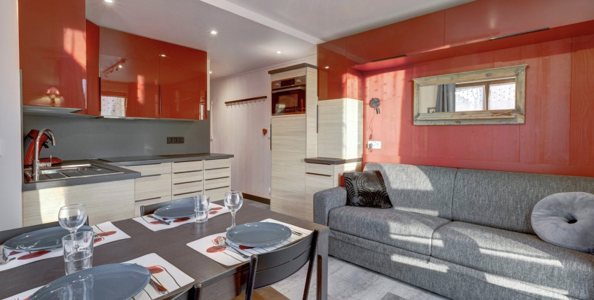 Il a été entièrement rénové, est prévu pour 4 et se situe au rez de chaussée de la Résidence La Logère.