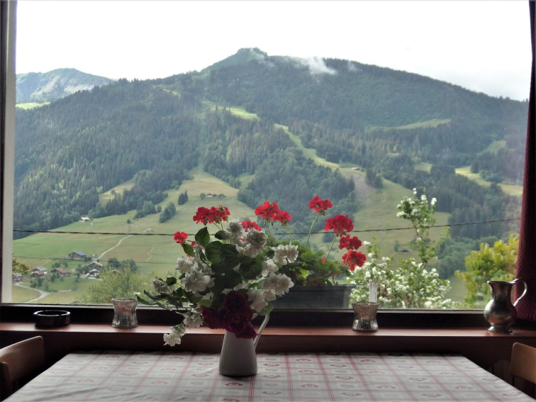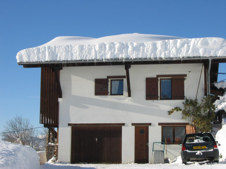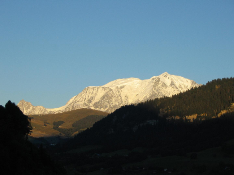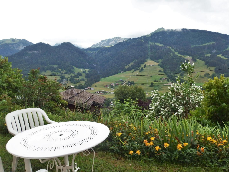 Il bénéficie d'un jardin, d'un parking privé et d'une terrasse orientée plein sud avec vue panoramique du Mont-Blanc au Mont-Charvin. petit coin très agrèable avec de la verdure à 900 m du village