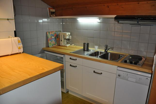 - Cuisine : deux plaques électriques, four combiné micro-ondes, lave vaisselle, réfrigérateur.